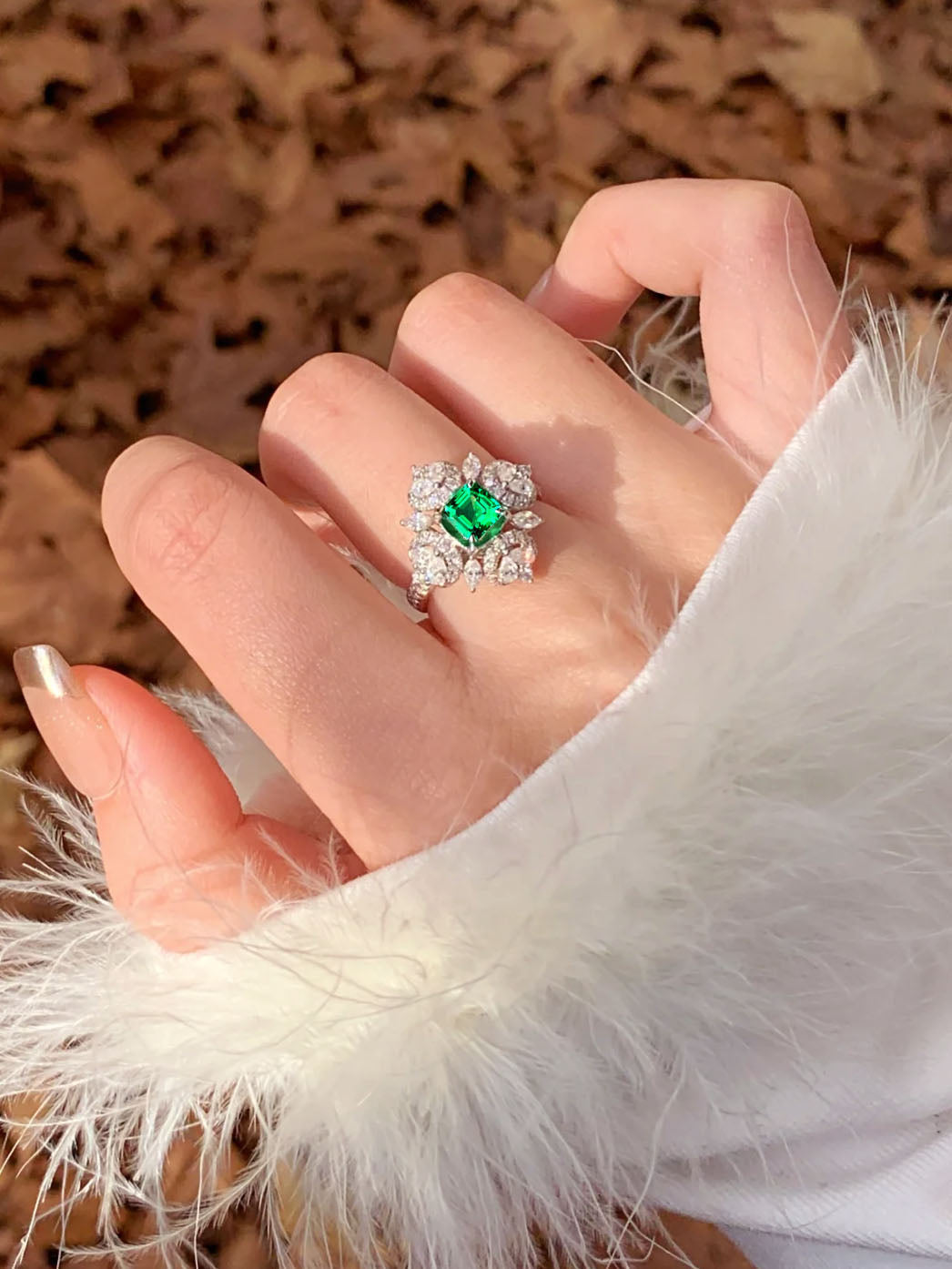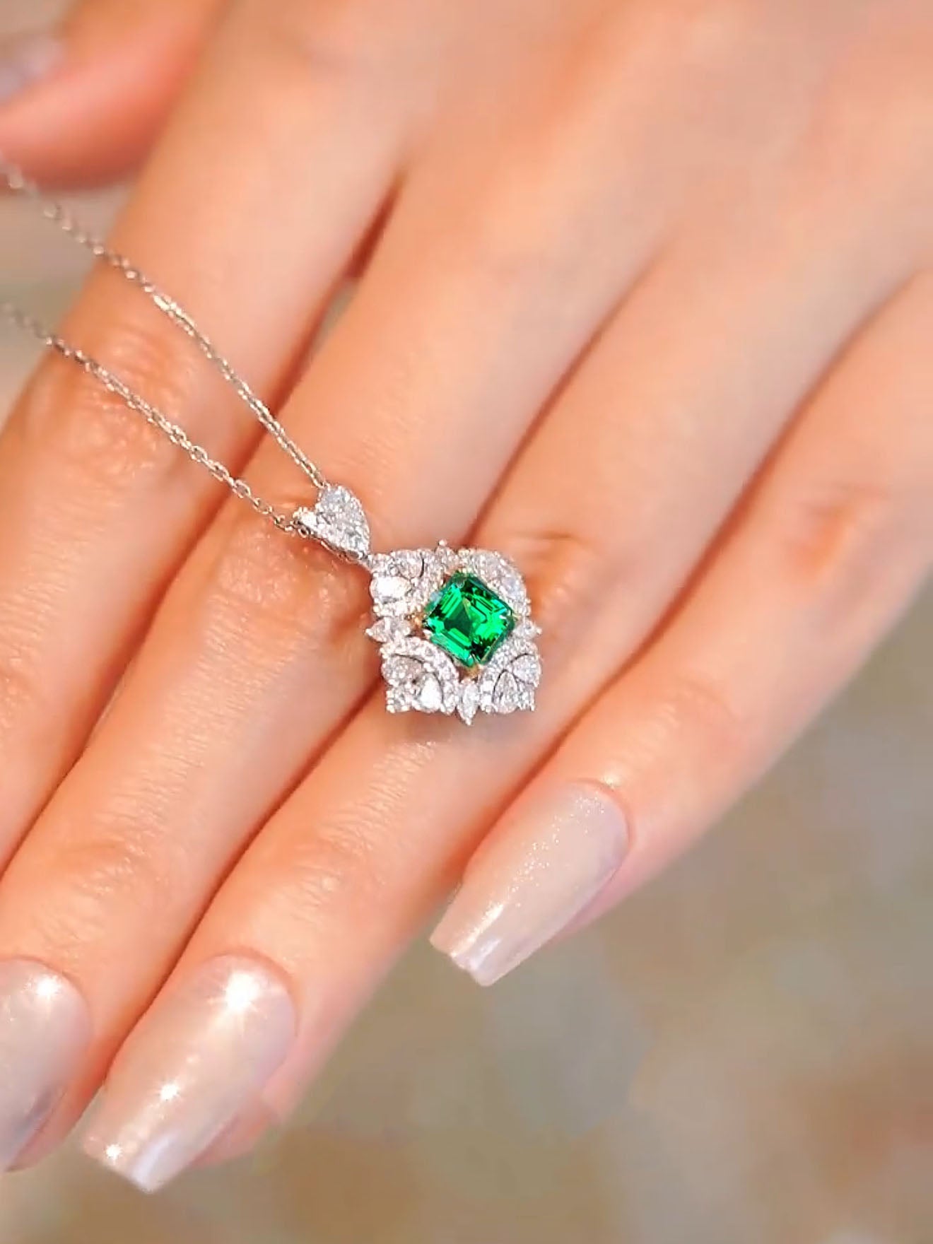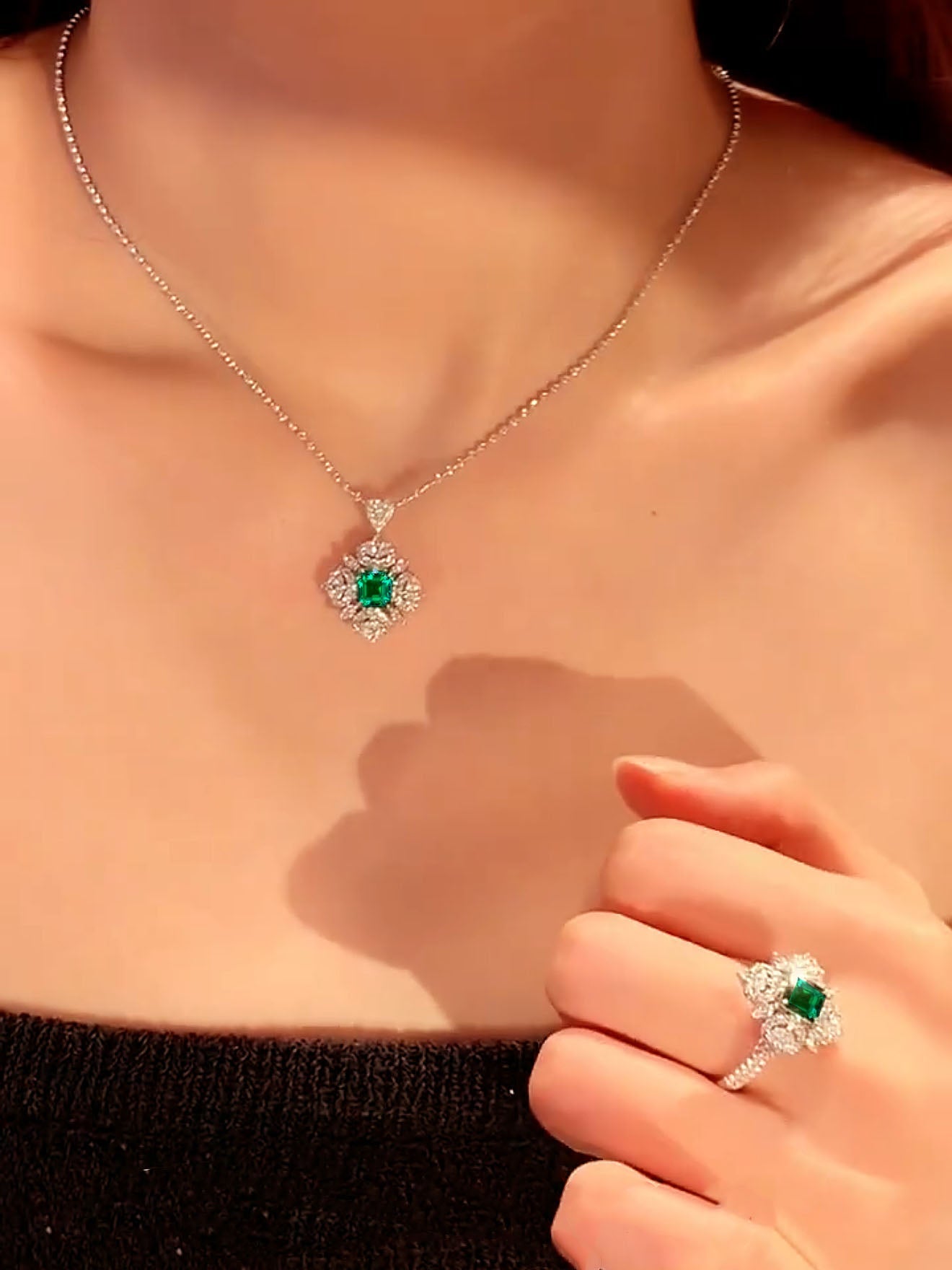 • Metal: Sterling Silver, Green Emerald Lab Grown Diamond